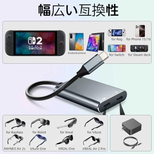 XREAL Neoを待たずにUSB Type-C直結の「スマートフォンを充電しながら電気メガネを使うアダプター」であるところのHiBLOKS AR Hub Gen2でNintendo Switch 2が使えてしまったので、お好きな15V 3A対応のモバイルバッテリーや充電器を使って気軽にTVモードで遊べるようになったのでした。